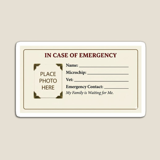 Essential safety gear for every pet household. This gender-neutral, high-visibility emergency card is designed to look like an official registry document, ensuring first responders and pet sitters take the information seriously.